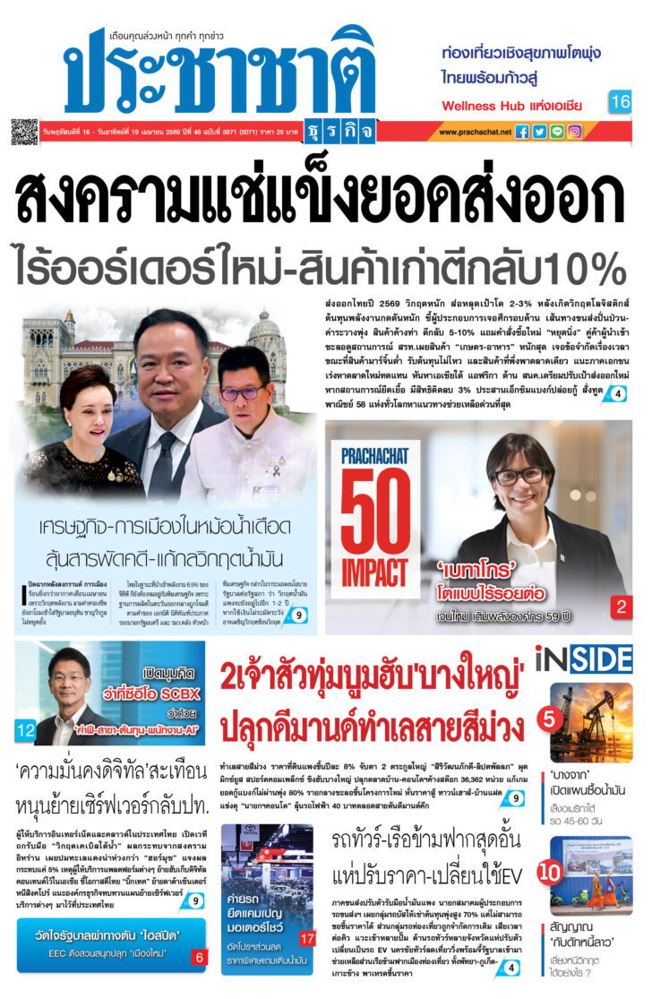 ในวาระ 50 ปี ประชาชาติธุรกิจ ได้เปิดเวที Prachachat Exclusive Forum 2026 : The-Long-Game #เกมธุรกิจฆ่าไม่ตาย ในวันพุธที่ 18 มีนาคม 2569 ที่แกรนด์ฮอลล์...