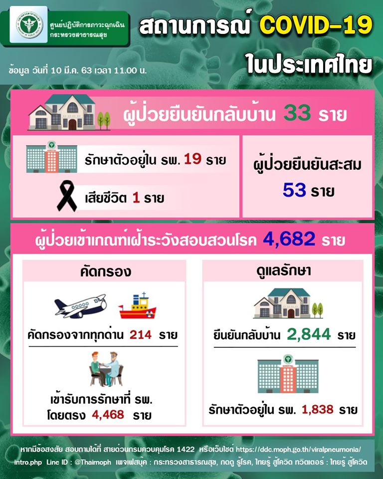 สรุปสถานการณ์ ถึงวันที่ 10 มีนาคม 2563 ณ เวลา 08.00 น.