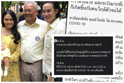 เมื่อวันที่ 16 มีนาคม 2563 น้ำทิพย์ เทือกสุบรรณ ลูกสาวนายสุเทพ เทือกสุบรรณ โพสต์ไอจี @namtipsy บอกว่า นิโคลัส โฮ สามี นักธุรกิจชาวฮ่องกง ติดไวรัส #โควิด19